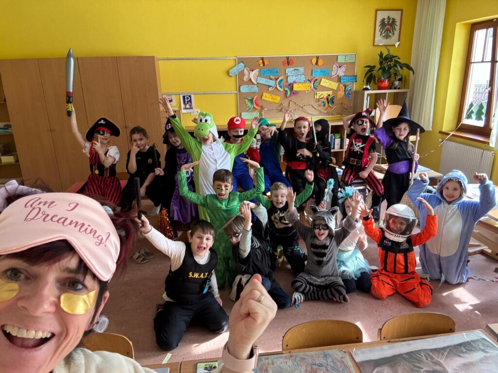 Die Kinder der VS Großschönau feierten heute ausgelassen den Faschingsdienstag. Außerdem wurden wir mit köstlichen Krapfen versorgt. Danke dafür an die Gemeinde! Leider haben alle Lehrerinnen verschlafen und mussten mit dem Pyjama in die Schule kommen.